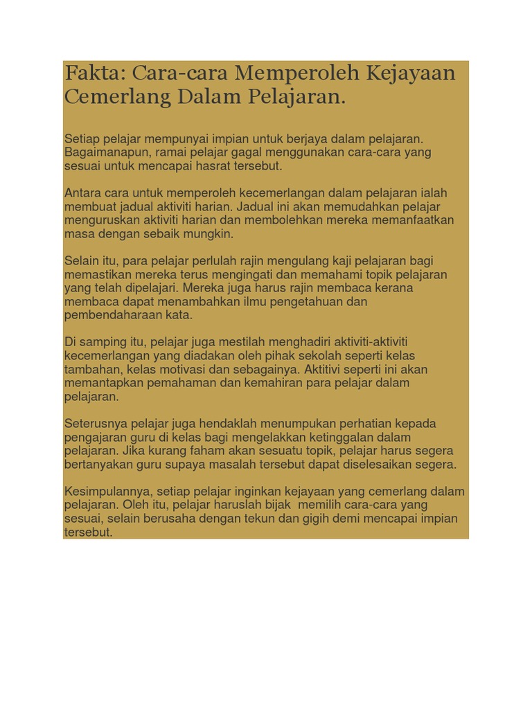 Karangan Langkah Langkah Untuk Berjaya Dalam Pelajaran Pdf