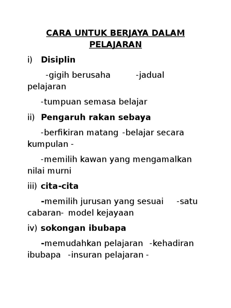 Cara Untuk Berjaya Dalam Pelajaran Pdf